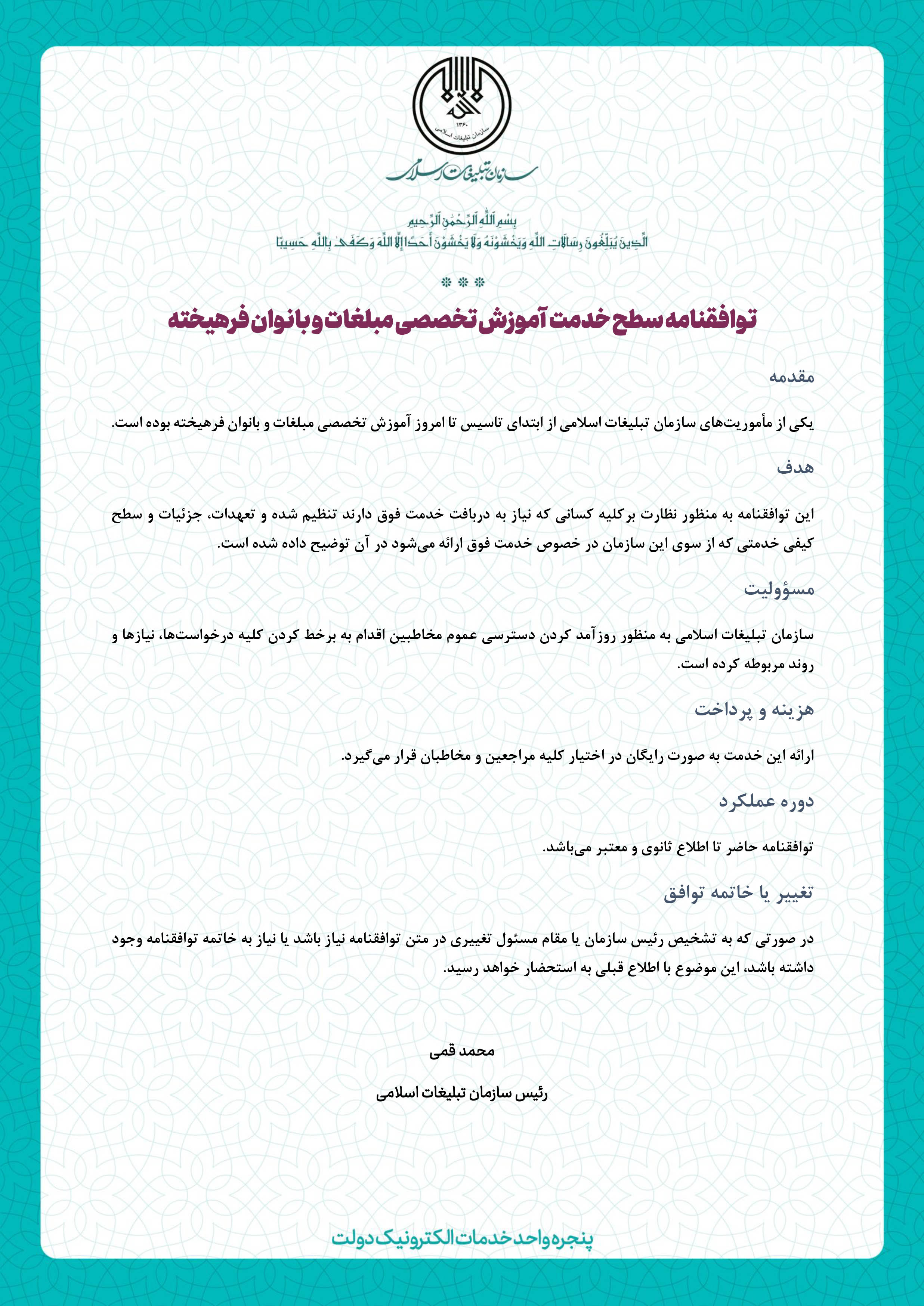 آموزش تخصصی مبلغات و بانوان فرهیخته