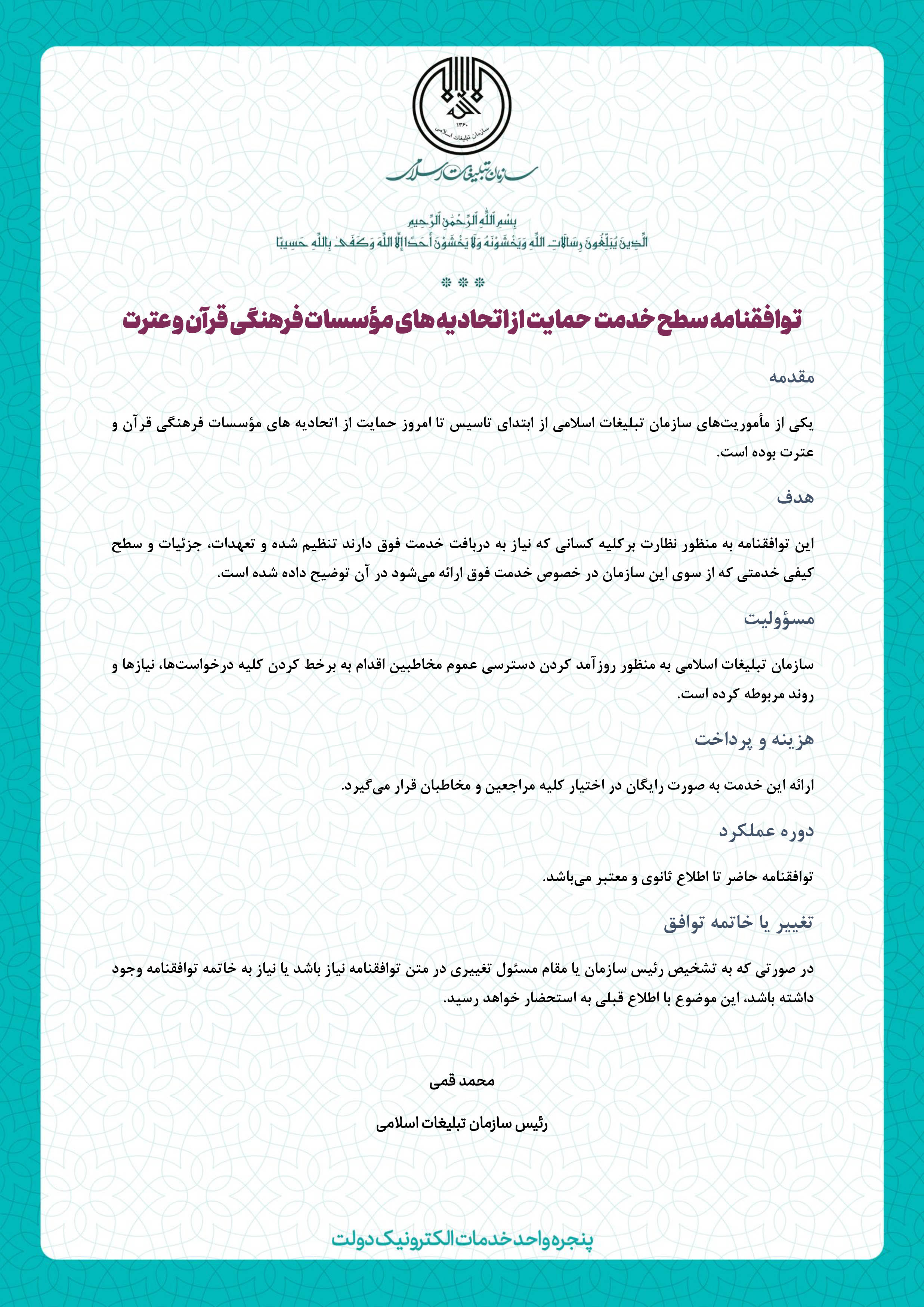 حمایت از اتحادیه های مؤسسات فرهنگی قرآن و عترت