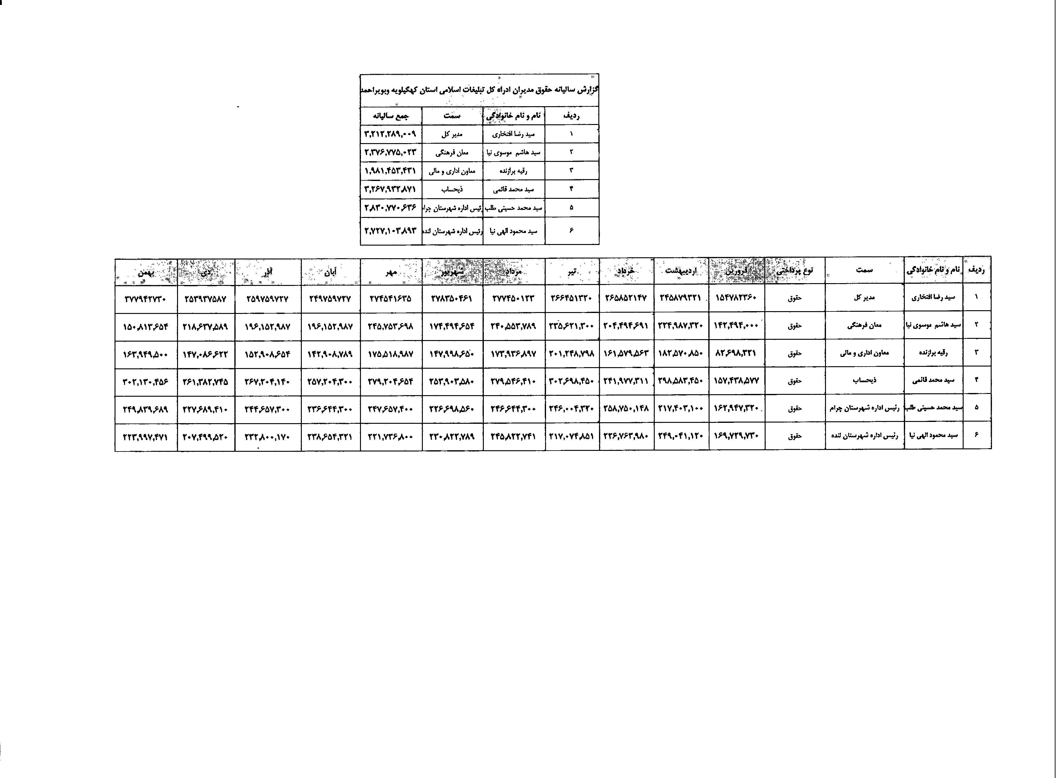 انتشار عمومی اطلاعات حقوق و مزایای ماهانه و سالانه مدیران