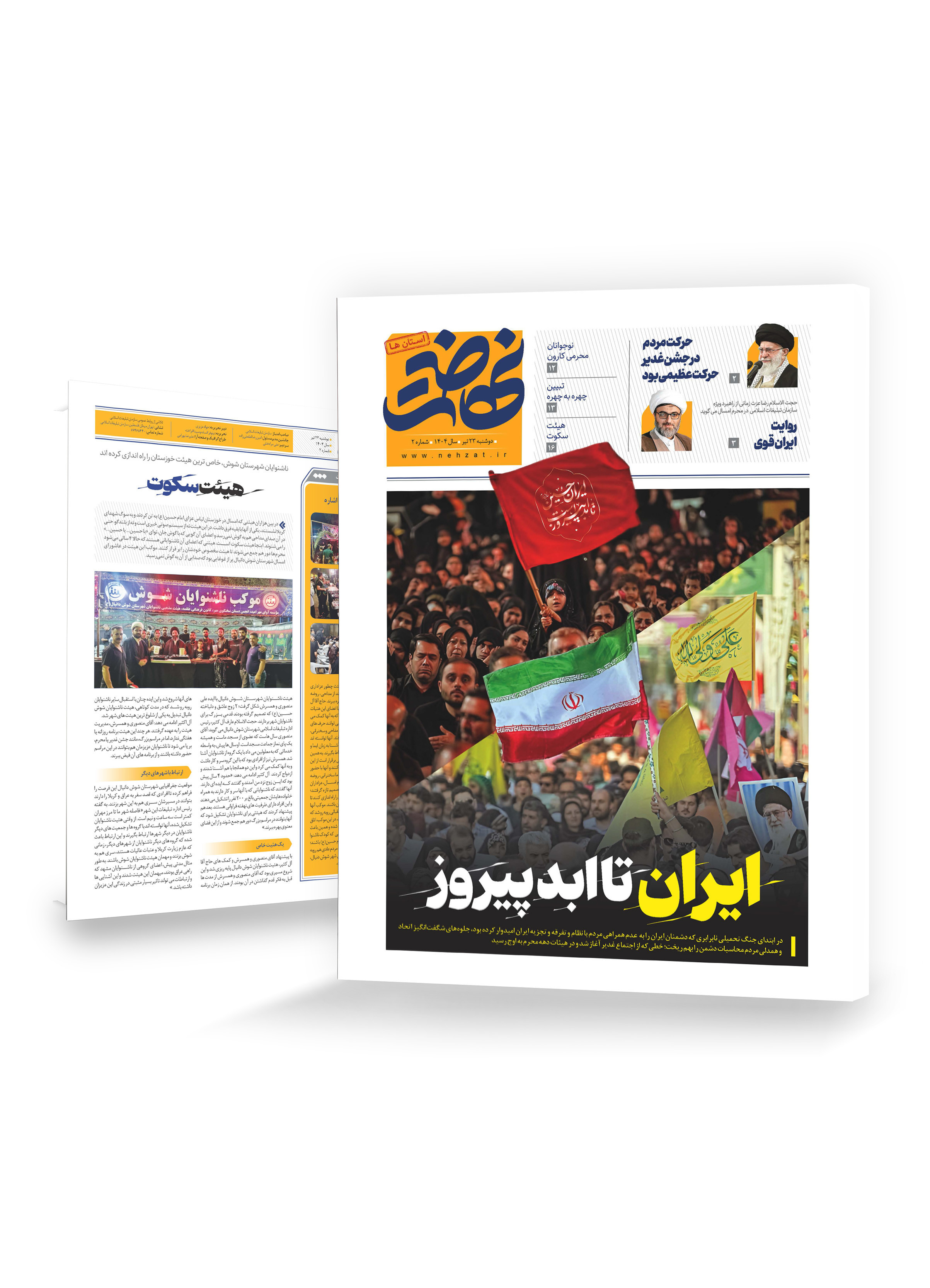ایران تا ابد پیروز درست توی ساعت‌هایی که دشمنان ایران با خیال خام ترسیدن ایرانی‌ها از حملات سبعانه صهیونیست‌ها خوشحال بودند، ایرانی‌ها به خیابان آمدند تا عید غدیر را به اجتماع باشکوه ایران ذوالفقار علی گره بزنند تا همه‌ی دشمنان دوباره از این ملت باشکوه و غیور تو دهنی بخورند؛ مسیر تاریخ‌سازی که از غدیر شروع شد و در دهه محرم ادامه یافت تا تصویر نمادین پرچم ایران و پرچم عزای حسینی با حمایت تاریخی این مردم نازنین، ایران را تا همیشه بیمه کند. ویژه‌نامه نهضت استان‌ها سفری کرده به روزهای تاریخی غدیر تا عاشورا در ایران؛ روزهایی که تاریخ از آن‌ها با شکوه و احترام یاد خواهد کرد.