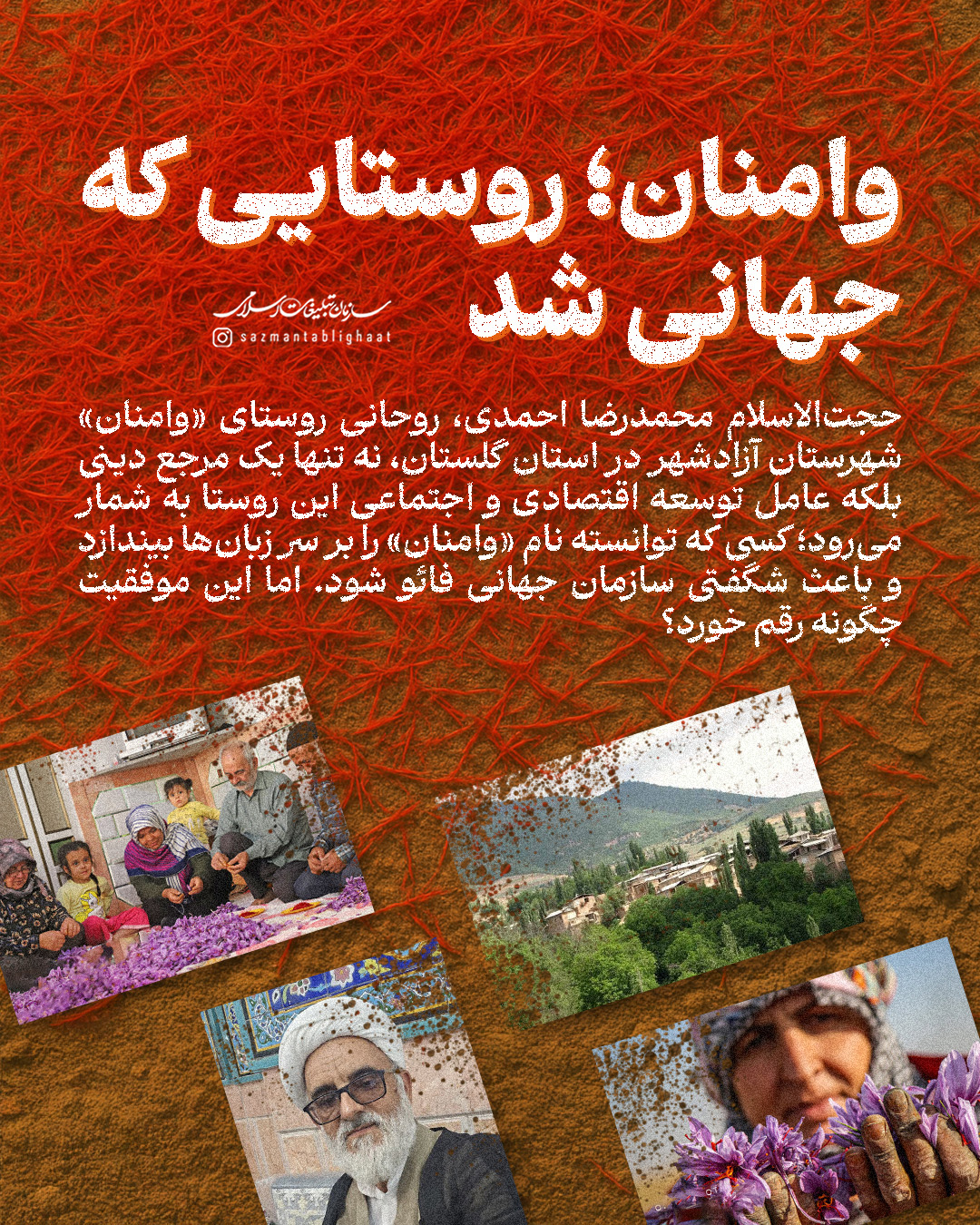 روستای وامنان در استان گلستان امروز به عنوان یکی از مراکز مهم کشت زعفران در ایران و بازارهای بین‌المللی شناخته می‌شود؛ مسیری که با تلاش‌های اهالی وامنان و ابتکار حجت‌الاسلام محمدرضا احمدی، روحانی این روستا شکل گرفت. در این شماره از نشریه دیجیتال مروری می‌کنیم بر ابتکار این روحانی که سازمان فائو را نیز شگفت‌زده کرد.