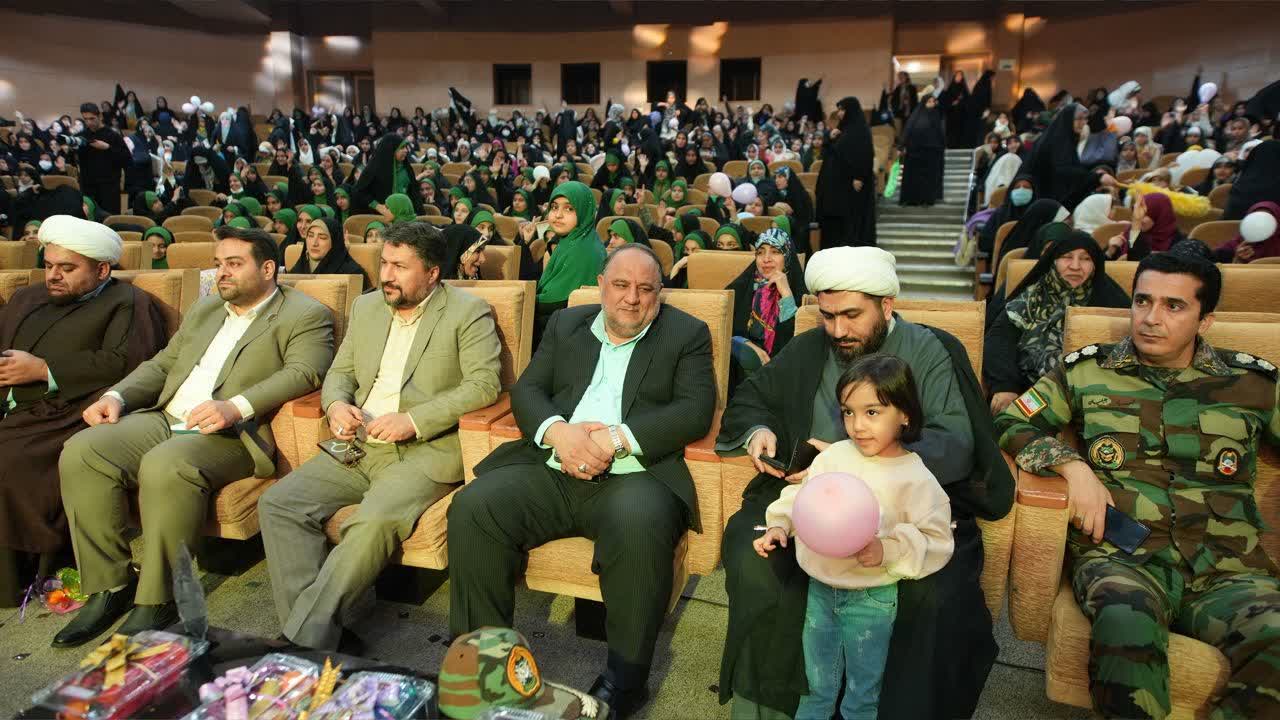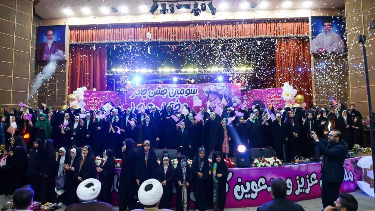 این مراسم با تلاوت آیات نورانی قرآن کریم آغاز گردید و با اجرای برنامههای متنوع فرهنگی ادامه یافت. در بخش اصلی مراسم، ۴۸۴ چادر نماز به دختران شرکتکننده اهدا شد تا نمادی از هدیهای فاطمی به نسل نوجوان باشد. اجرای طنز مذهبی با محوریت حجاب و عفاف، حضوری پرشور از خواننده انقلابی، سرودهای دستهجمعی توسط دختران و گفتوگوهای صمیمی با خانوادههای معظم شهدا از جمله برنامههای جذاب این جشن بود. حضور خانوادههای شهدا و روایتهای آنان از ایثار و حجاب مادران و همسران شهید، لحظات تأثیرگذاری را برای حاضران رقم زد.