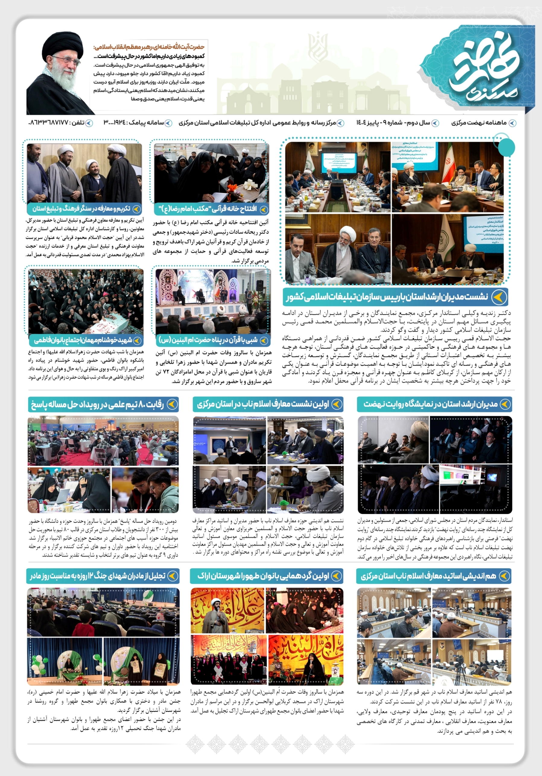 بیستمین ماهنامه نهضت مرکزی اداره کل تبلیغات اسلامی استان مرکزی منتشر شد.