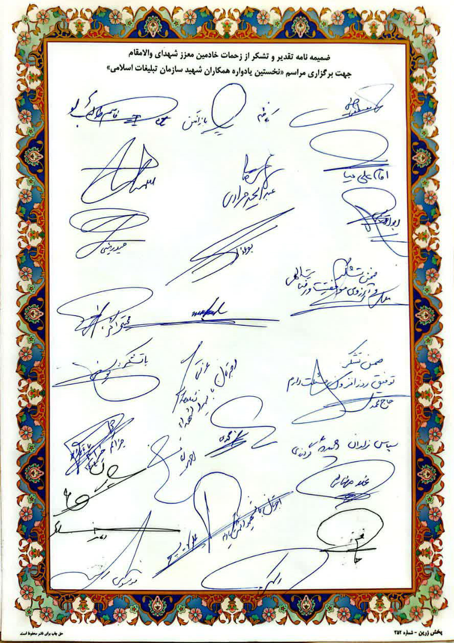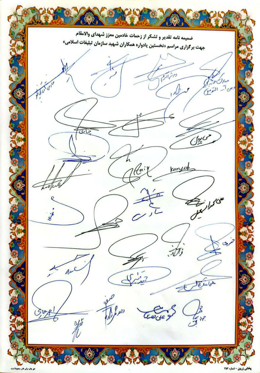 یادواره شهدای والامقام با حضور جمعی از همکاران برگزار شد و در پایان این مراسم، همکاران با امضای تقدیرنامه ای از برگزارکنندگان تقدیر کردند.