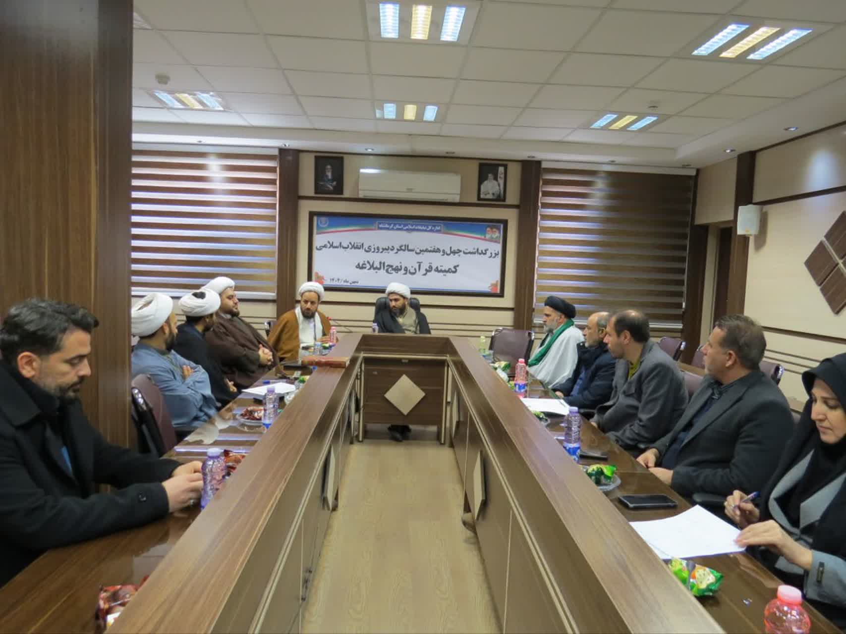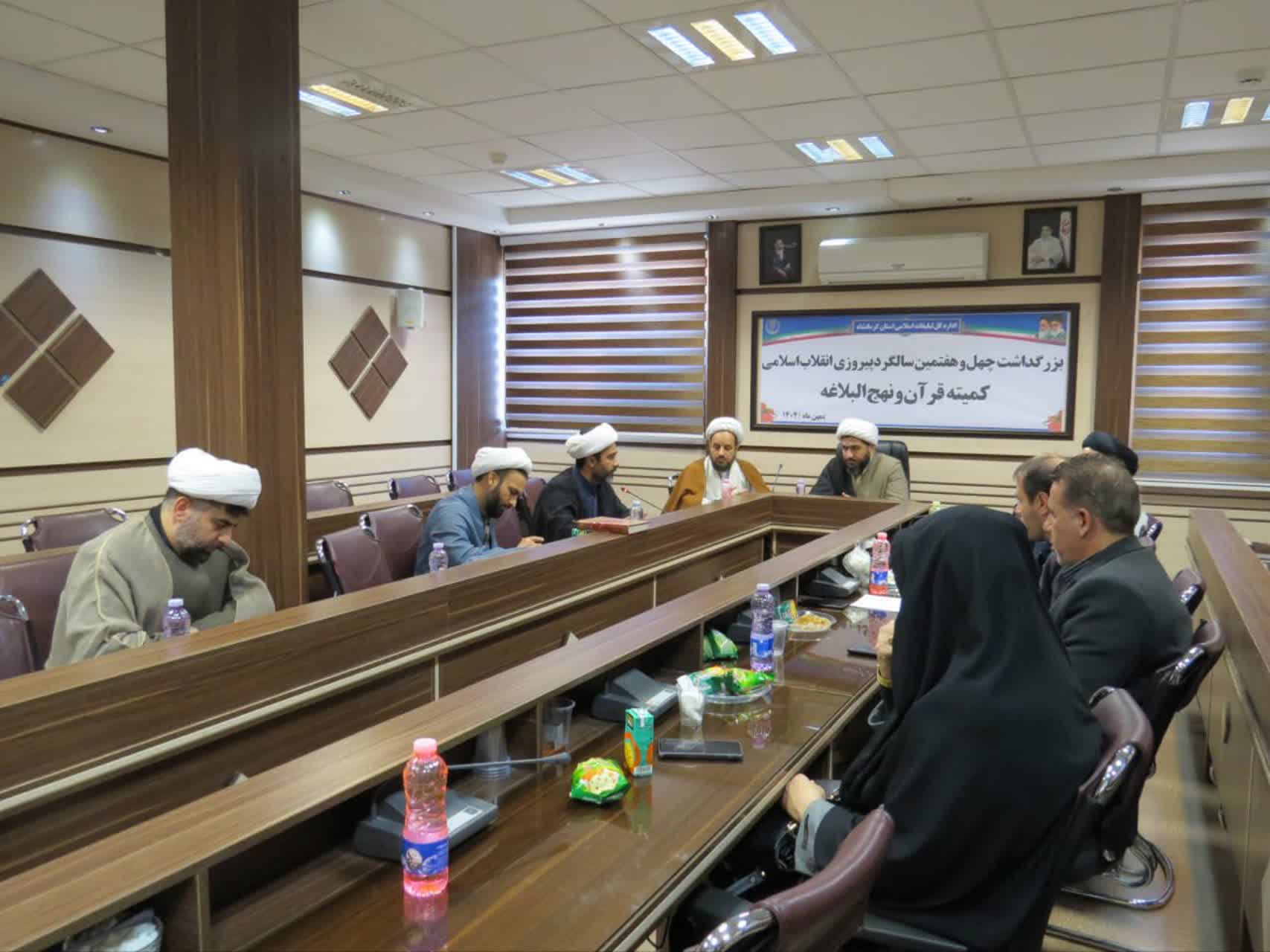 به گزارش روابط عمومی سازمان تبلیغات اسلامی ، جلسه کمیته قرآن و نهج البلاغه بزرگداشت چهل و هفتمین سالگرد پیروزی انقلاب اسلامی استان کرمانشاه با حضور مدیرکل تبلیغات اسلامی ، رئیس شورای هماهنگی تبلیغات اسلامی ، معاون فرهنگی تبلیغات اسلامی و نمایندگان قرآنی دستگاه های عضو کمیته برگزار گردید.