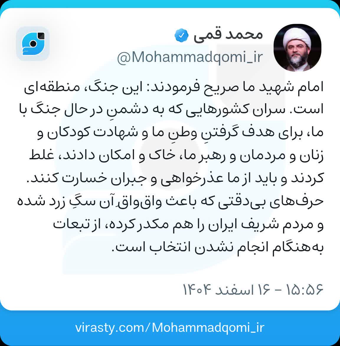 ۱۶ اسفند | حجتالاسلام قمی نوشت؛