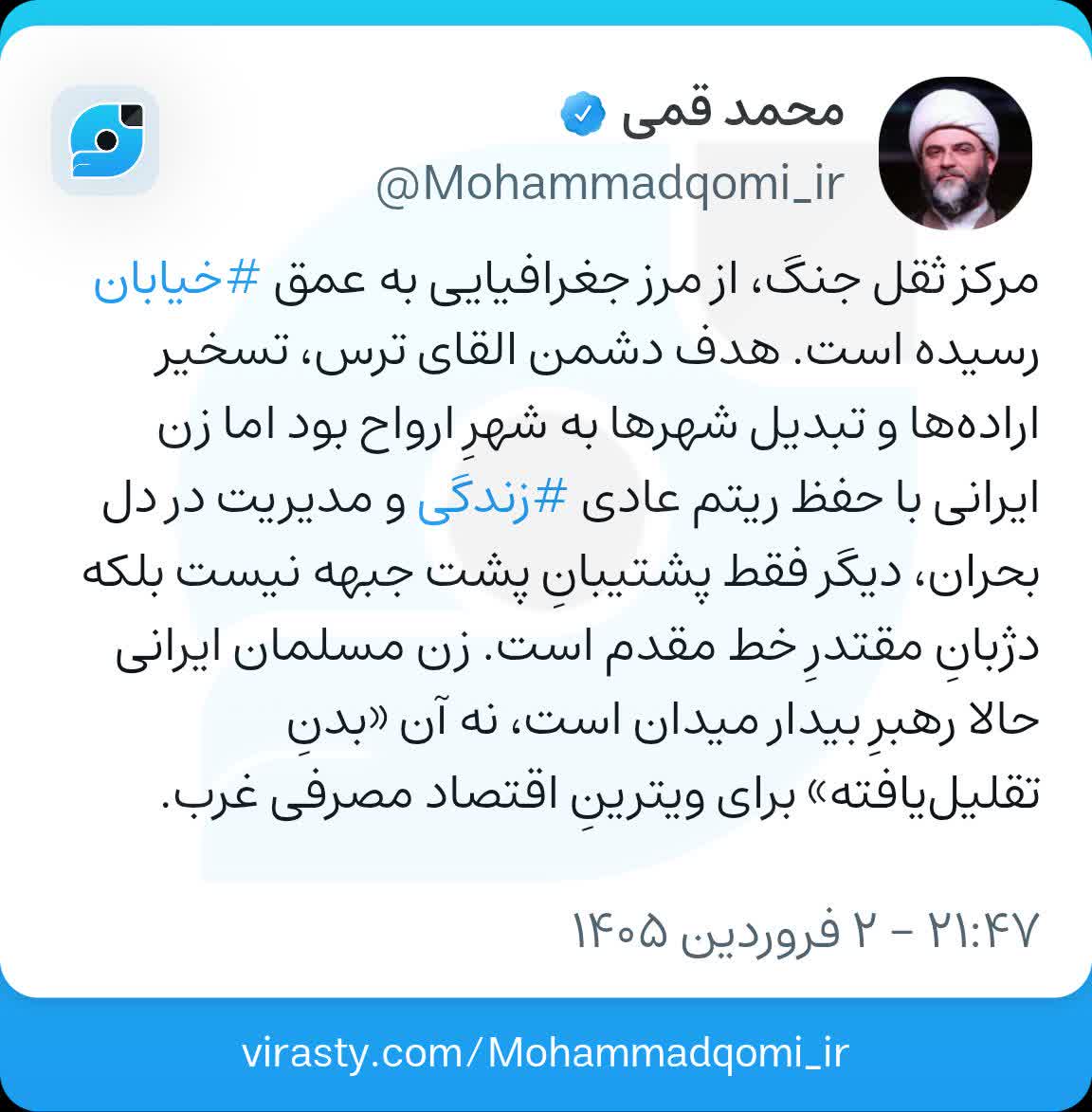 ۳ فروردین | حجتالاسلام قمی در صفحه شخصی خود نوشت؛