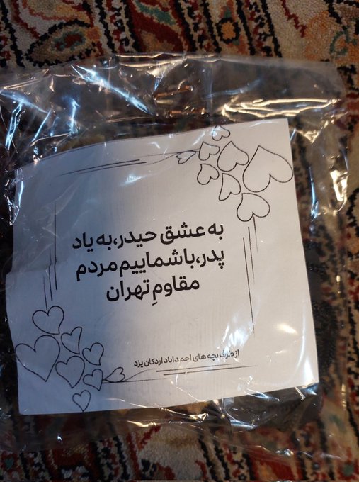به رغم اینکه تمام ایران زیر حملات آمریکایی صهیونیستی است، اما تهران مرکز بمباران جنگ رمضان است و خرابیهای گستردهای بهبار آورده است. مردم وطندوست اقصینقاط کشور، برای دلجویی از مردم تهران، بستههای همدلی خود را رهسپار کردهاند. نمونه آن، بستههای توت خشک و کشمش و خرمایی است که از احمدآباد اردکان یزد به تهران ارسال شده است. روی این بستهها نوشته: «به عشق حیدر، به یاد پدر، با شماییم مردم مقاوم تهران.»