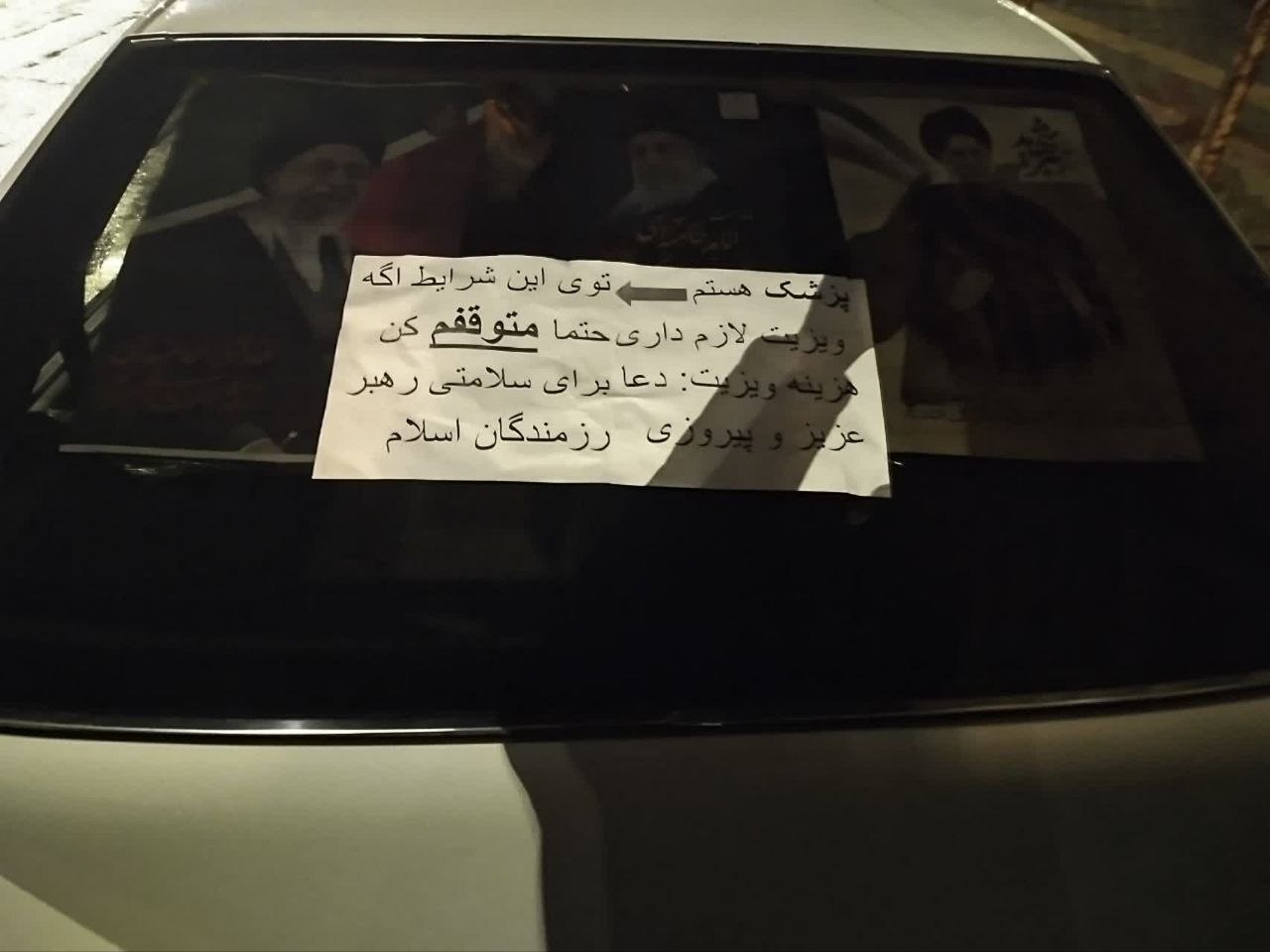 این روایت همدلی، پیر و جوان و زن و مرد نمیشناسد و افراد در هر جایگاهی، به سهم خود برای کمک دست به سینه ایستادهاند. یک پزشک همدانی هم کاغذی را پشت شیشه ماشینش چسبانده باراین مضمون: «پزشک هستم. توی این شرایط اگه ویزیت لازم داری، حتما متوقفم کن. هزینه ویزیت: دعا برای سلامتی رهبر عزیز و پیروزی رزمندگان اسلام.»