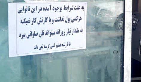 با شروع جنگ، خیلی از کسبوکارها تعطیل یا نیمهتعطیل شد. همین شرایط عدهای را با وضعیت وخیم اقتصادی مواجه کرد. از سوی دیگر، برخی کارتهای عابربانک هم به دلیل اختلالات بانکی با مشکل مواجه و به دلیل نداشتن پول نقد دچار مشکل شدند. یکی از نانواییهای یکی از شهرهای کشور برای این که بتواند قدم کوچکی برای مردم کشورش برداشته باشد، کاغذی به در مغازهاش چسباند و رویش نوشت: «به علت شرایط بهوجودآمده در این نانوایی هر کسیپول نداشت و با کارتش کار نمیکنه، به مقدار نیاز روزانه میتواند نان صلواتی ببرد. ما تا زنده هستیم، کسی گرسنه نمیماند.»