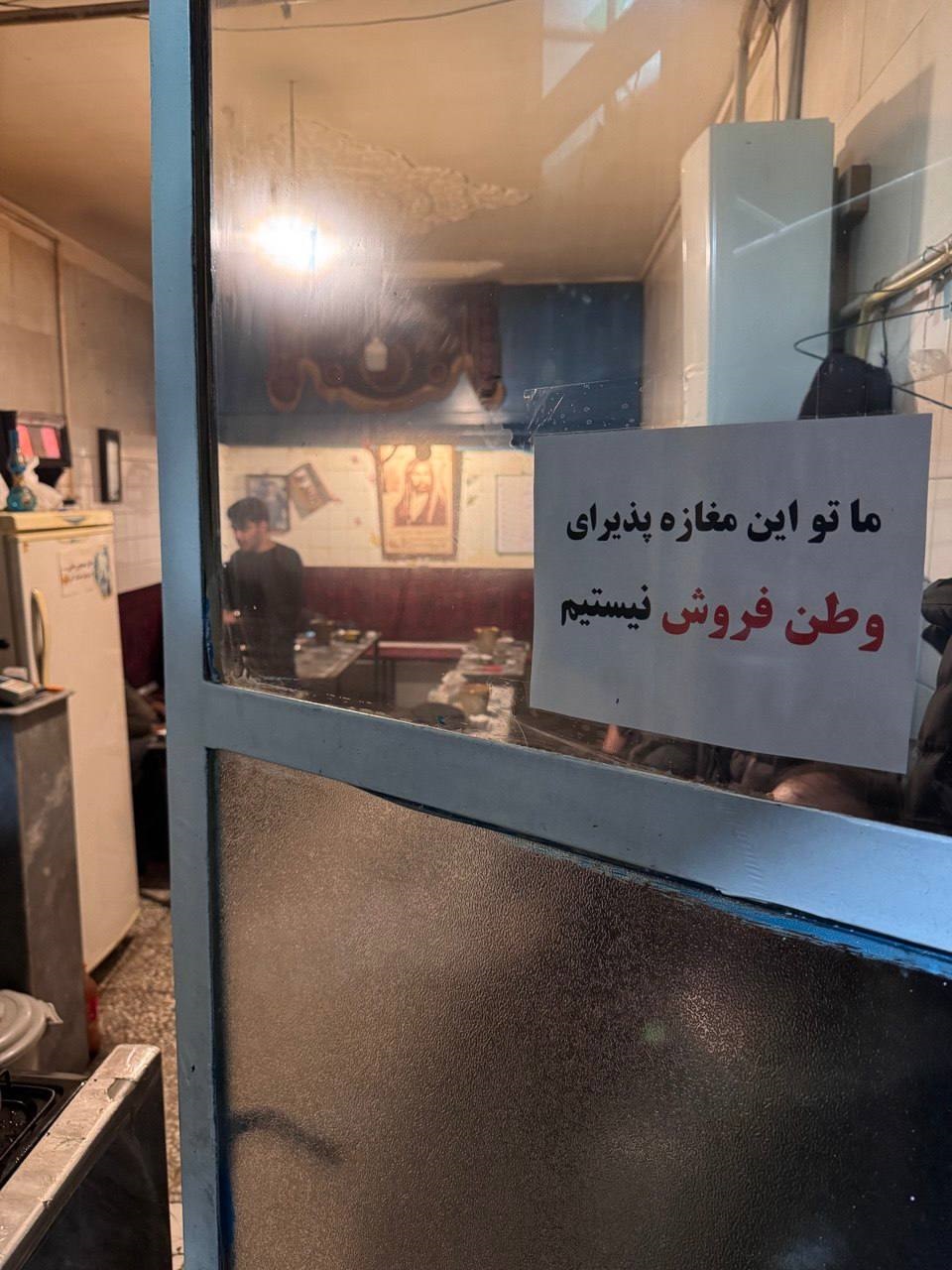 در گیر و دار این که بسیاری از حرفهها و افراد سعی دارند تا باری از دوش هموطنان خود بردارند، یک قهوهخانه در یکی از شهرستانها نیز تلاش کرده امید را به دلها تزریق کند. صاحب این قهوهخانه کاغذی را روی دیوار مغازه چسابنده و نوشته: «اگه فکر میکنی ما پیروز جنگ نیستیم، با یه خداحافظی ما رو خوشحال کن.» همینطور روی در ورودی مغاز هم نوشته: «ما تو این مغازه پذیرای وطنفروش نیستیم.» همین جملات ساده، هم امیدبخش هستند و هم برائت از معدود افرادی میکند که هنوز فکر میکنند آمریکا برای آزادی آنها به کشور حمله کرده است.
