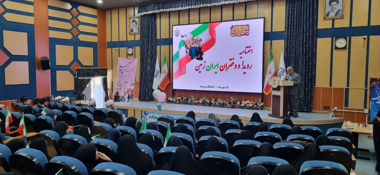 اختتامیه رویداد سه روزه دختران ایران زمین (دختران حاج قاسم) در تالار ولایت دانشگاه بیرجند با حضور حجت‌الاسلام حامد تقدیری؛ رییس سازمان مدارس صدرا و بنیاد ملی نوجوان سازمان تبلیغات اسلامی برگزار شد.