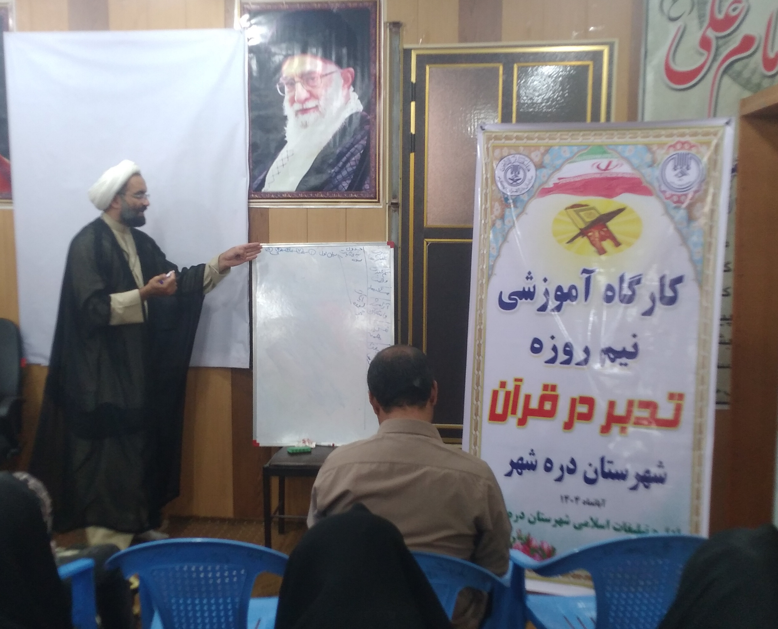 به همت اداره امور قرآنی استان ایلام و اداره تبلیغات اسلامی شهرستان دره شهر، کارگاه آموزشی نیم روزه تدبر در قرآن کریم ویژه فعالان قرآنی ( مبلغین، مبلغات، مسئولین و مربیان خانه های قرآن و مربیان قرآن اداره آموزش و پرورش ) با حضور حجت‌الاسلام محمد جواد ابراهیمی از اساتید برجسته قرآنی کشور در سالن اجتماعات اداره تبلیغات اسلامی شهرستان دره شهر برگزار شد.