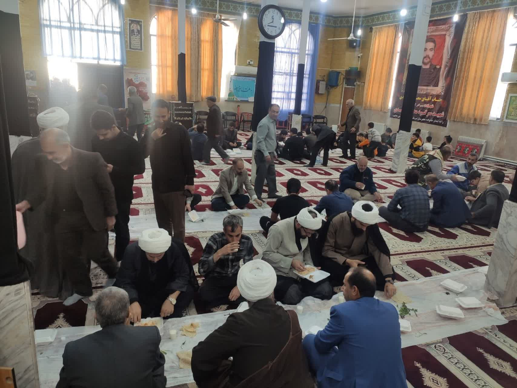 بمناسبت سالروز شهادت حضرت فاطمه الزهرا(س) تعداد 400 پرس غذای گرم، با مشارکت خیرین، نیکوکاران و همکاری دفتر امام جمعه، اداره تبلیغات اسلامی و ستاد نمازجمعه ،پخت و در بین عزاداران توزیع گردید.