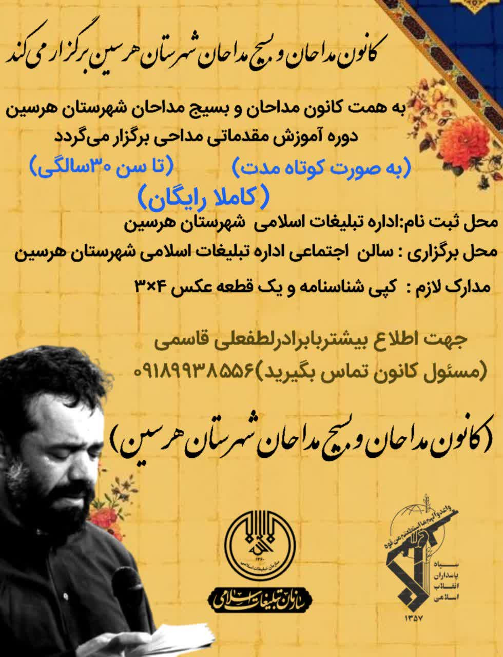 دوره آموزش مداحی، فرصتی بی‌نظیر برای دلدادگان حسینی در شهرستان هرسین
