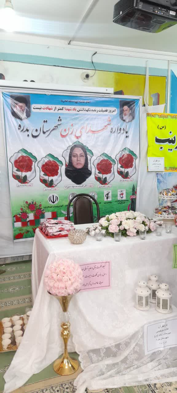 به همت اداره تبلیغات اسلامی،بسیج جامعه زنان و بنیاد شهید شهرستان بدره یادواره 5 شهیده زن شهرستان بدره به مناسبت ایام ولادت باسعادت حضرت فاطمه الزهرا(س) و روز زن در محل دبیرستان دخترانه حضرت زینب(س) شهر بدره همراه با برنامه های متنوع و تجلیل از دختران نوجوان و جوان فعال فرهنگی و مذهبی برگزار شد.