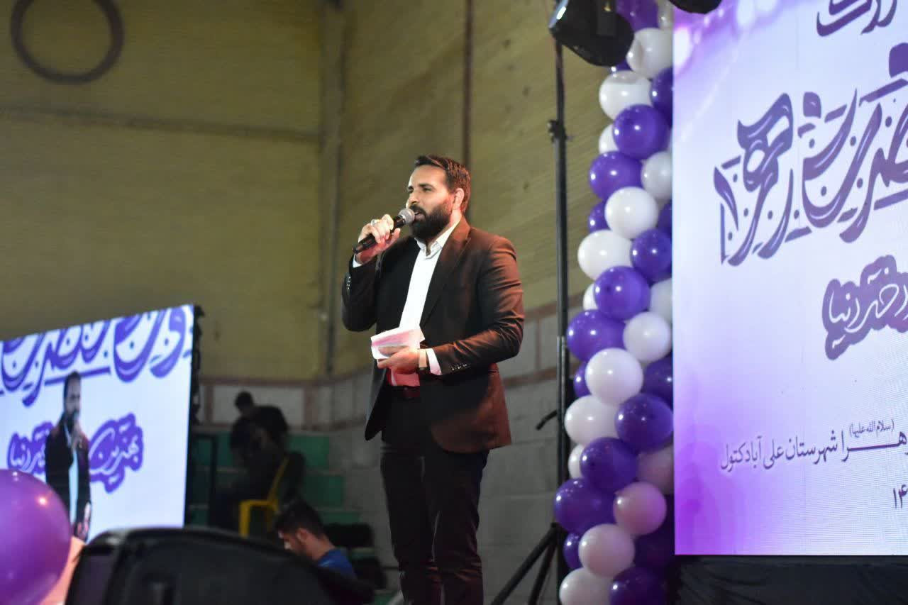 **خلاصه خبر (ویرایش‌شده):** مراسم جشن باشکوه ولادت حضرت فاطمه زهرا (سلام‌الله‌علیها) آذرماه 1404 با حضور گسترده خانواده‌های معظم شهدا، مردم و مسئولان شهرستان علی‌آبادکتول در سالن سرداران شهید برگزار شد. این مراسم با اجرای برنامه‌های متنوعی همچون سخنرانی، مولودی‌خوانی، استندآپ کمدی، مسابقات فرهنگی و اهدای جوایز همراه بود. در بخش ویژه‌ای از این جشن، از مادران شهدای جنگ 12 روزه شهرستان، شامل مادران شهیدان عباس کردکتولی، امید گوگلانی و علیرضا پهلوان، تجلیل به عمل آمد. همچنین نفرات برتر مسابقات قرآنی سپاه شهرستان مورد تقدیر قرار گرفتند و در پایان، نوجوانان حلقات صالحین با اهدای شاخه گل و دست‌بوسی، از مقام والای مادران خود قدردانی کردند.