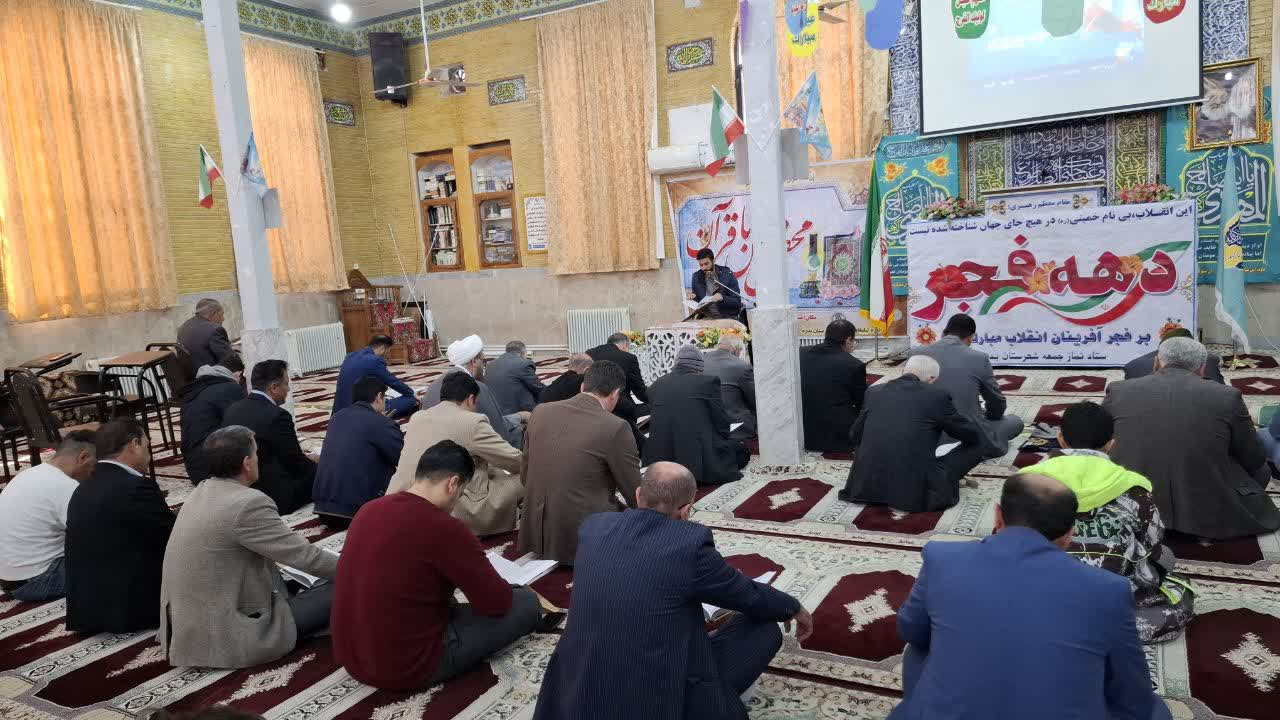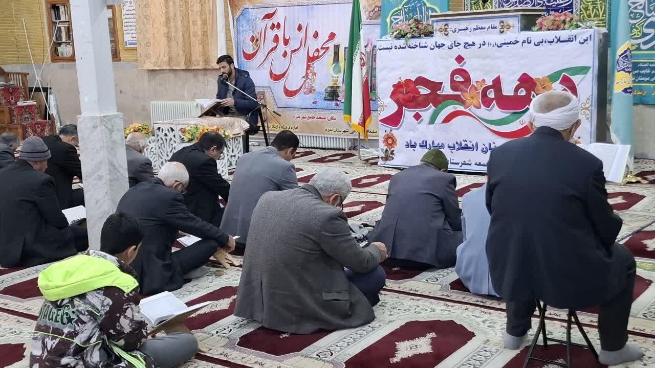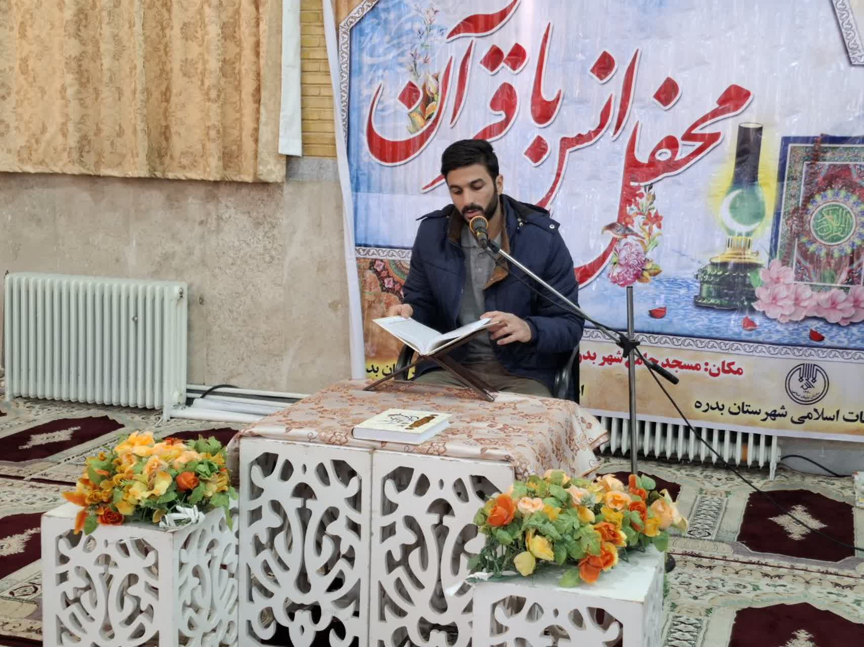 محفل انس با قرآن کریم با تلاوت آیات منتخب نهضت زندگی با آیه ها و با تلاوت قاریان برجسته شهرستان و استانی در محل مسجدجامع شهر بدره برگزار شد. این محفل قرآنی با همکاری اداره تبلیغات اسلامی و ستاد نماز جمعه به مناسبت اعیاد شعبانیه و دهه مبارک فجر انقلاب اسلامی برگزارشد