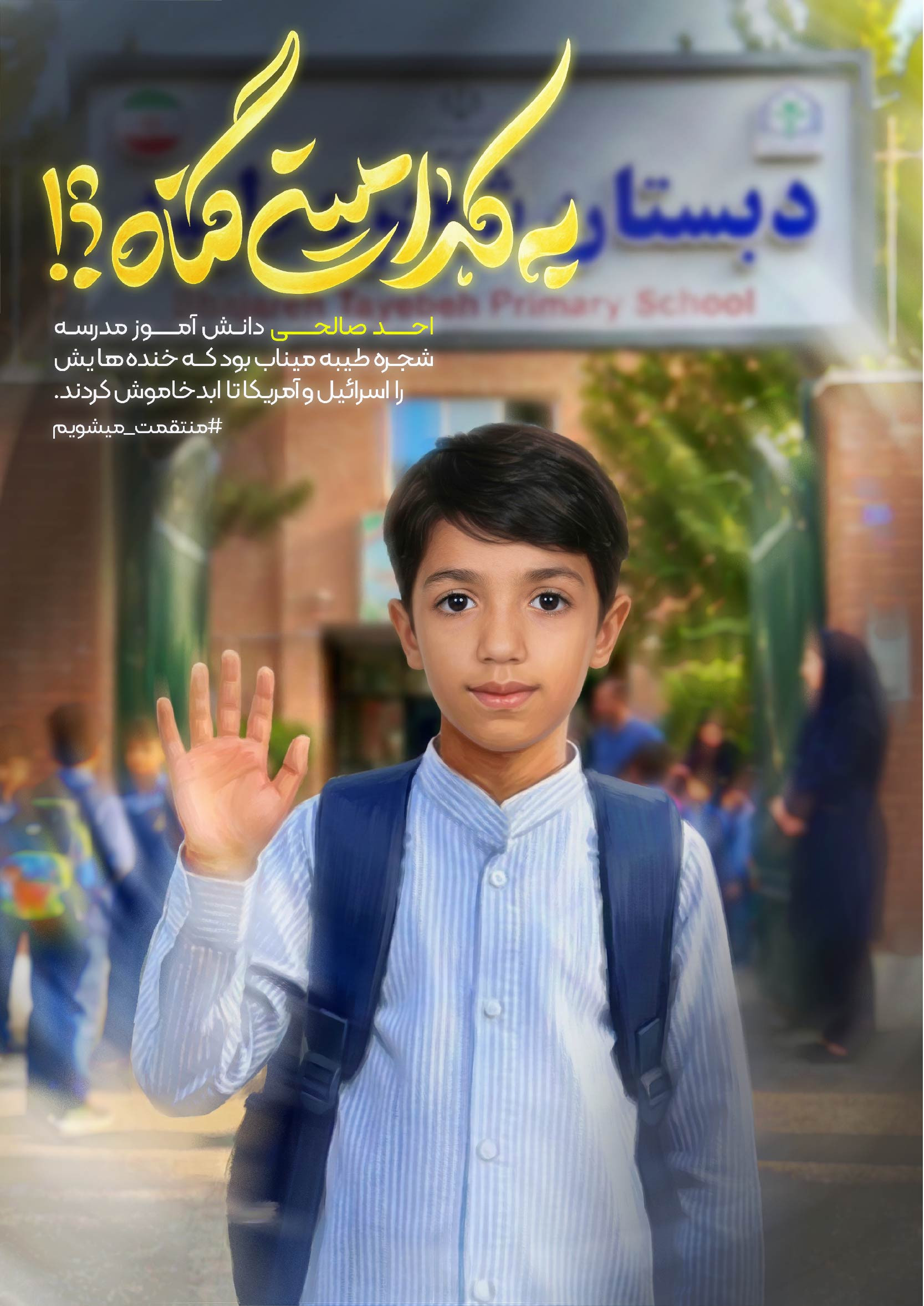 اینها قابهایی است از دانش آموزان شهید دبستان شجره طیبه میناب. دانش آموزان شهیدی که تنها چند ساعت پس از آغاز جنگ تحمیلی دوم آمریکایی و صهیونی رمضان ۱۴۰۴ به دست کودک کشان امروز جهان پر پر شدند. این دبستان در همان ساعات ابتدایی جنگ با دو بمب هدف حمله قرار گرفت. بمب اول منجر به شهادت گروهی از دانش آموزان شد و بمب دوم دانش آموزان و معلم این مدرسه را که در نمازخانه مدرسه پناه گرفته بودند به شهادت رساند. به یاد ۱۶۵ دانش آموز شهید این دبستان.
