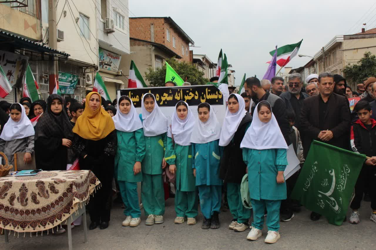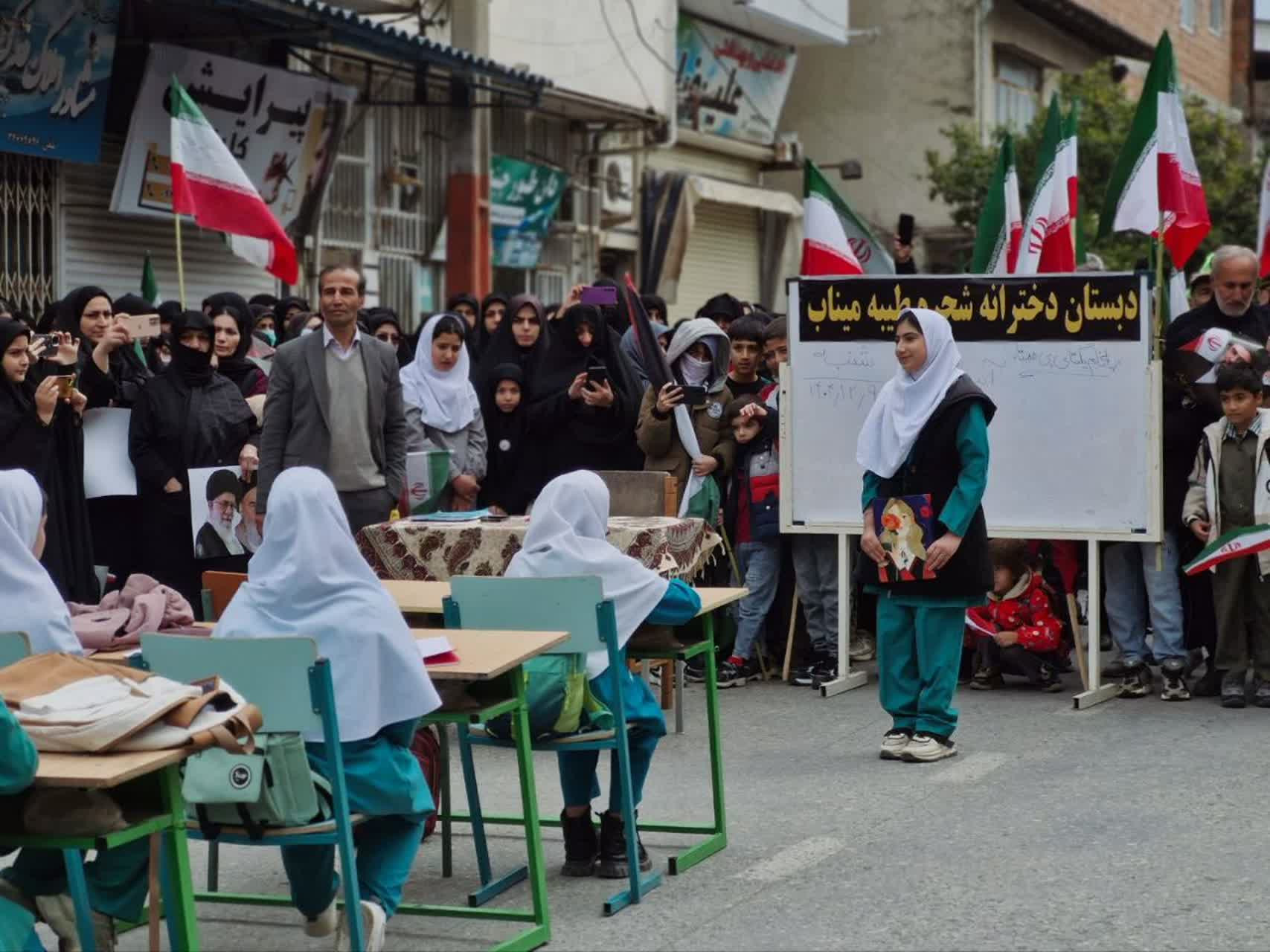 نمایش خیابانی با موضوع شهدای دانش آموز دبستان شجره طیبه میناب در راهپیمایی روز قدس با حضور باشکوه مردم ولایی و مسولین شهرستان گلوگاه برگزار شد .