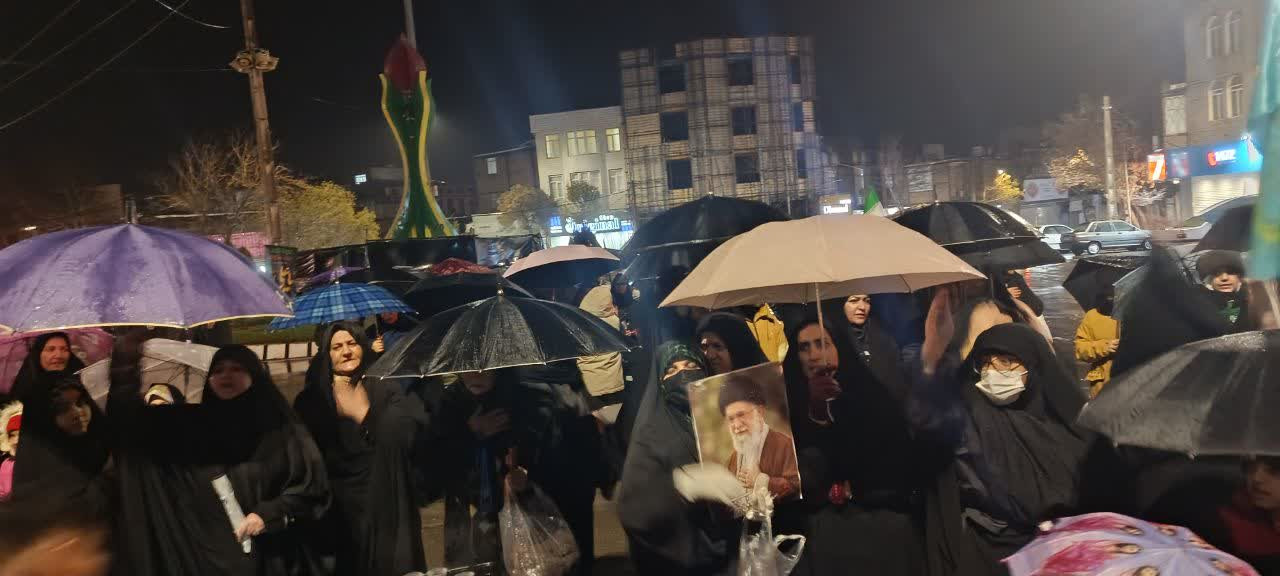 اجتماع امشب مردم ولایتمدار کنگاور حتی باران هم حریف حضور مردم نشد.